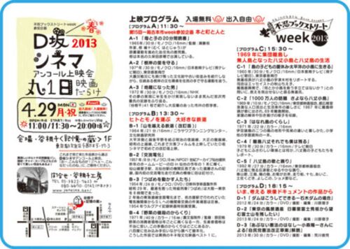 谷根千〈記憶の蔵〉では上映会です。 大正時代に建てられ、かつては個人宅の貯蔵庫であった蔵を、映画保存協会と谷根千工房がこの地に暮らす人々の記憶の宝箱として蘇らせるべく修復を重ねながら活動しています。 【D坂シネマ】アンコール上映会〜丸一日映…